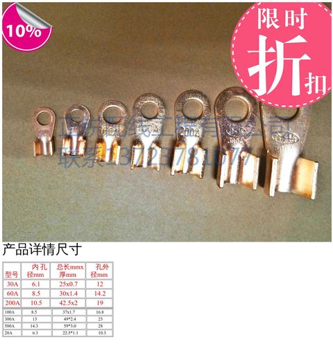 OT cold pressure opening wire ear copper nose terminal copper 30A 60A 100A 200A 600A 500A