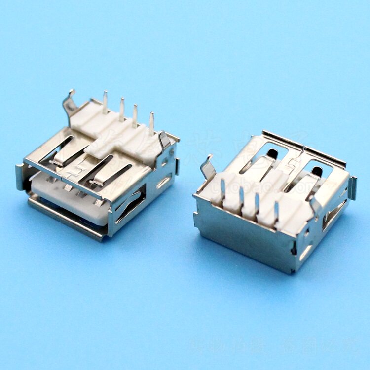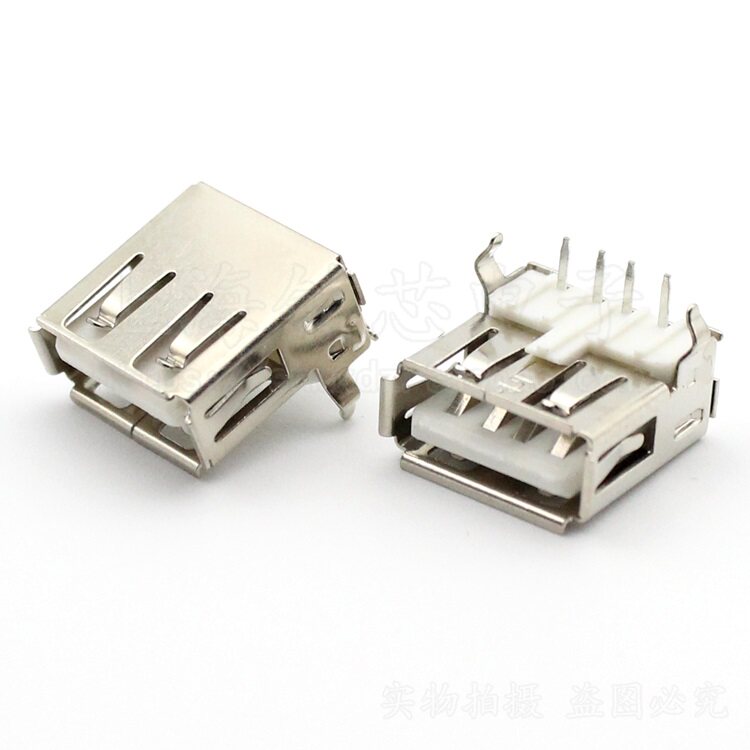 Horizontal USB2 0-A Type socket USB connector 90-degree bending needle female head welding plate data interface