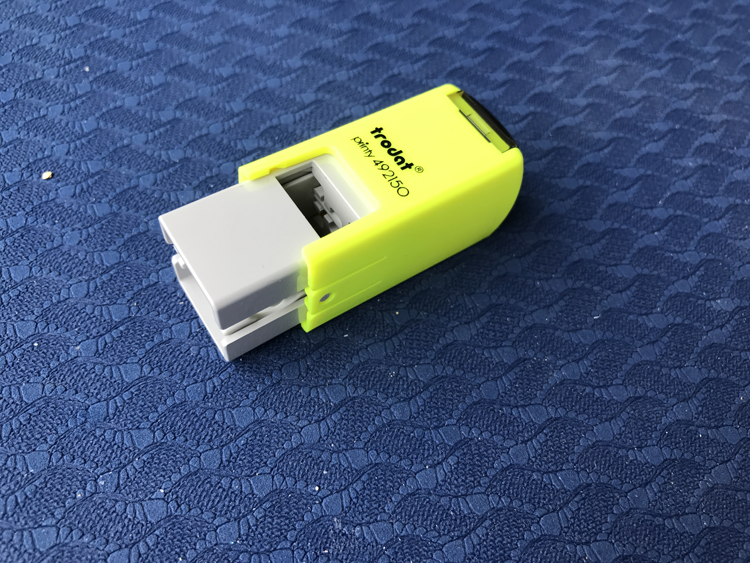 The seal has a blank ink pad. The seal has a black ink pad. The seal has a red ink pad. The seal has a green ink pad. The seal has a blue ink pad. The seal has a purple ink pad.
