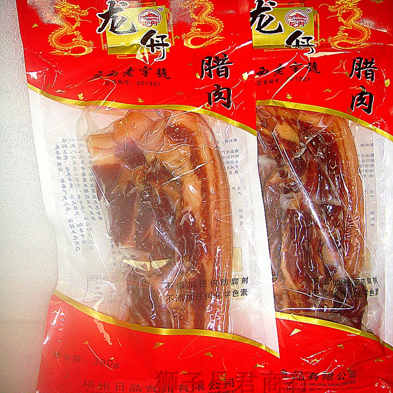 (3 bags)Guangxi Wuzhou specialty dragon Boat first-class bacon 380g sweet and non-greasy Cantonese wax flavor