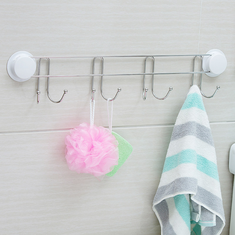 Jiabao vacuum suction cup hook frame Stainless steel hook row hook Kitchen bathroom shelf hook