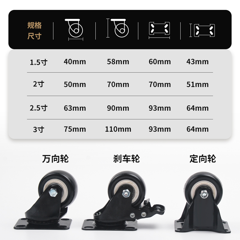 1 5 inch orientation wheel 1 5 inch universal wheel 1 5 inch universal brake wheel 2 inch orientation wheel 2 inch universal wheel 2 inch universal wheel 2 inch universal brake wheel 1 5 inch orientation wheel (four fit) 1