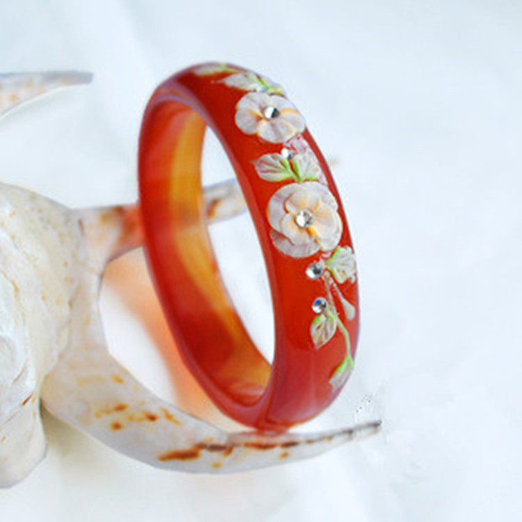 Vintage court-style jade bracelet Brazilian jade bracelet Glass luster crimson carved diamond-set agate bracelet for women