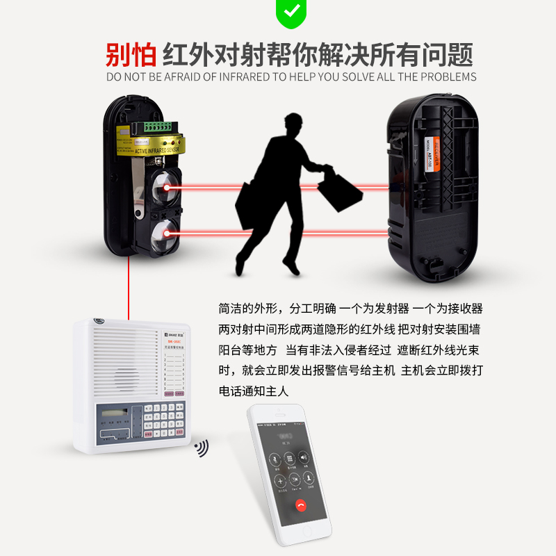 Infrared beam alarm two beams ABT-100 outdoor waterproof fence infrared anti-theft detector
