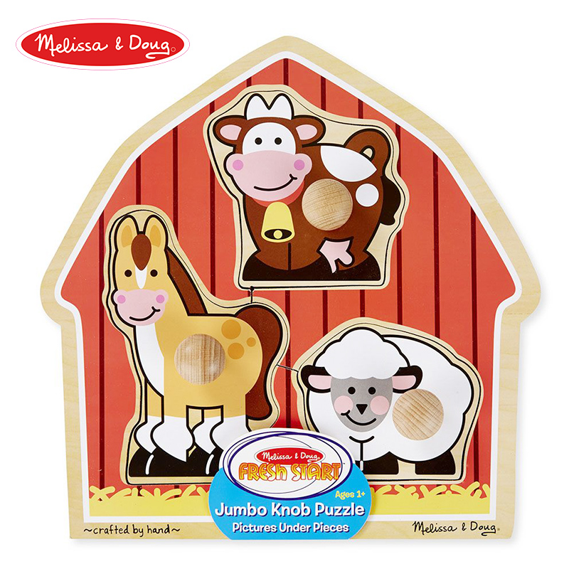 American Melissa Doug large ball handle puzzle wooden puzzle toy children's educational puzzle
