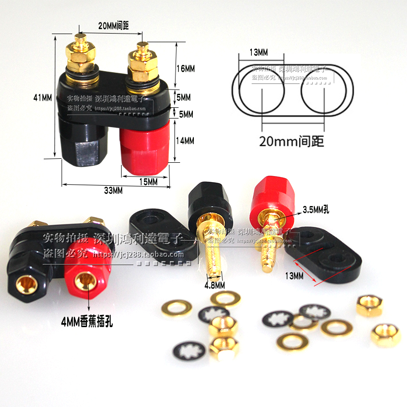 Red and black double splicing post, connecting post, amplifier, audio terminal, banana socket, gold-plated