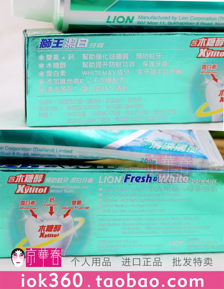 Imported Japan LION Lion King's white toothpaste whitening 200G light mint with fluoroxylitol cool taste port