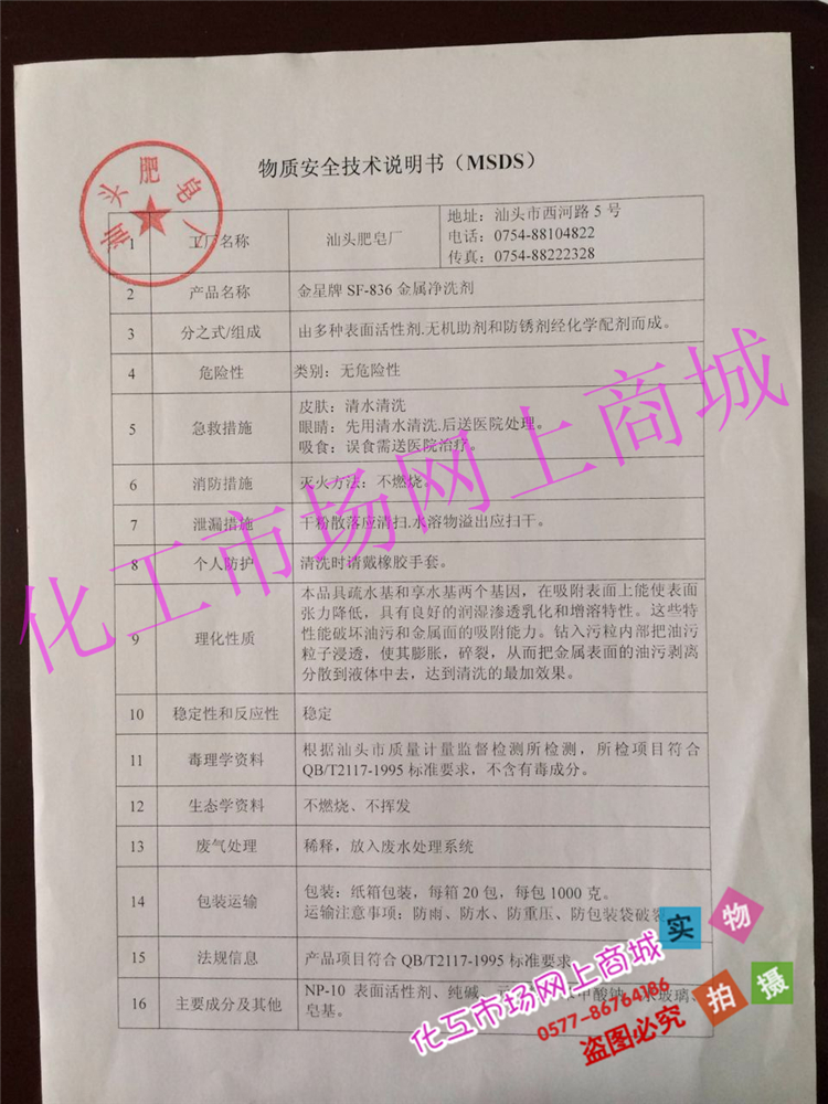 Jinxing brand SF-836 type metal cleaner Oil cleaning agent degreasing anti-rust energy-saving products 1 kg