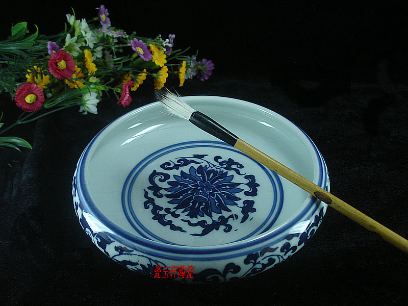 Green flower pen washing string of branches lotus flower pattern Jingdezhen
