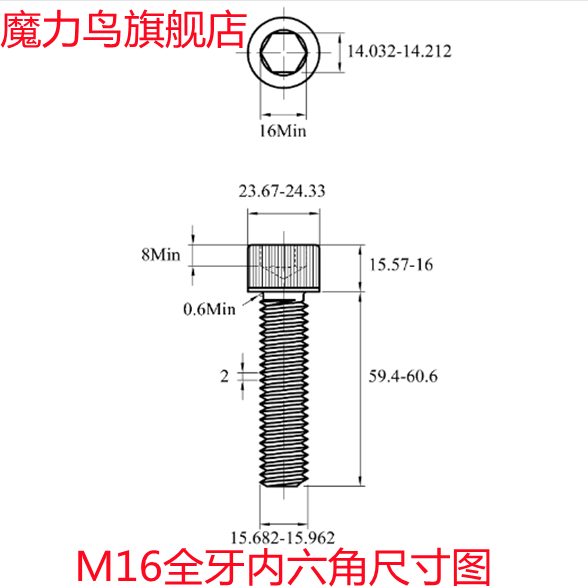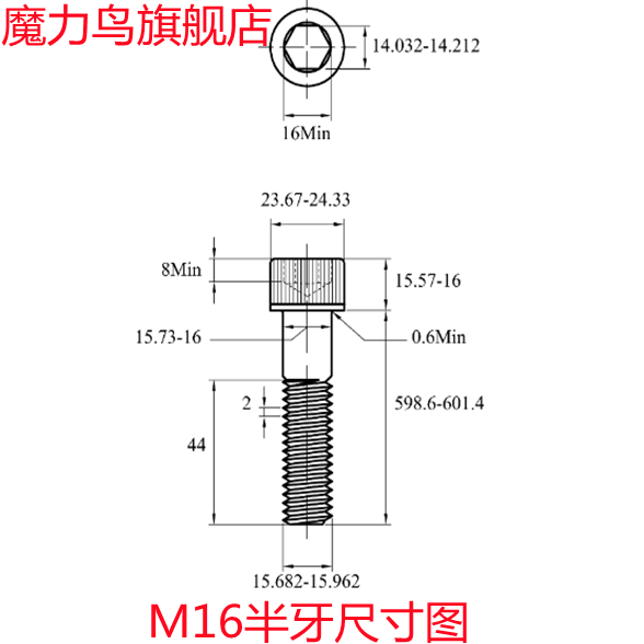 12 9 grade GB70-85 full tooth inner hexagonal screw M16 * 25 30 30 40 40 45 50 55 60 65 70 70 Taobao
