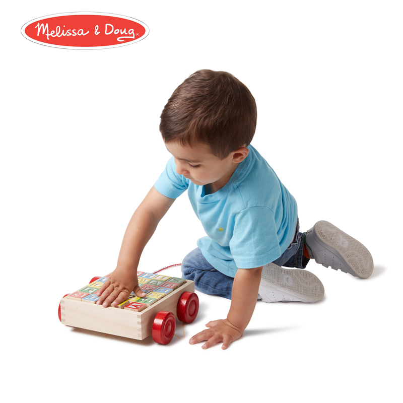 American Melissa Doug classic building blocks trolley children's wooden toys building blocks toy educational