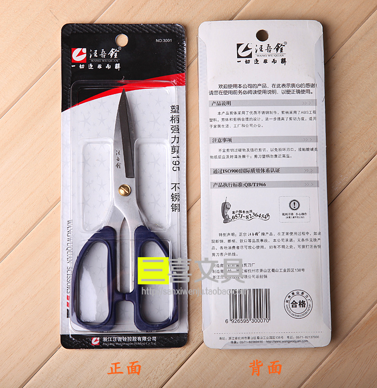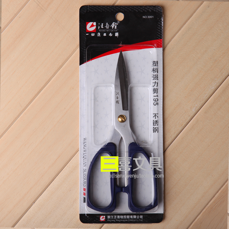 Wang Wu Quan Scissors Advanced Plastic Handle Powerful Scissors 195 Stainless Steel Household Cutting Tool 3001