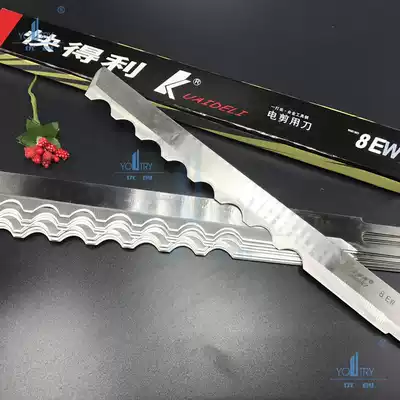 A box of 8-inch straight knives, a box of 10-inch straight knives, a box of 8-inch wave knives, a box of 10-inch wave knives, a box of 12-inch straight knives, a box of 12-inch wave knives