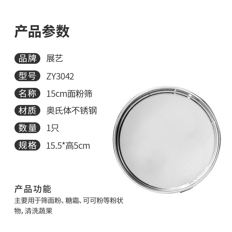 Shangqiao Kitchen-Exhibition Art Flour Screen Filter Screen 304 Stainless Steel Round Sugar Powder Screen Household Baking Mesh