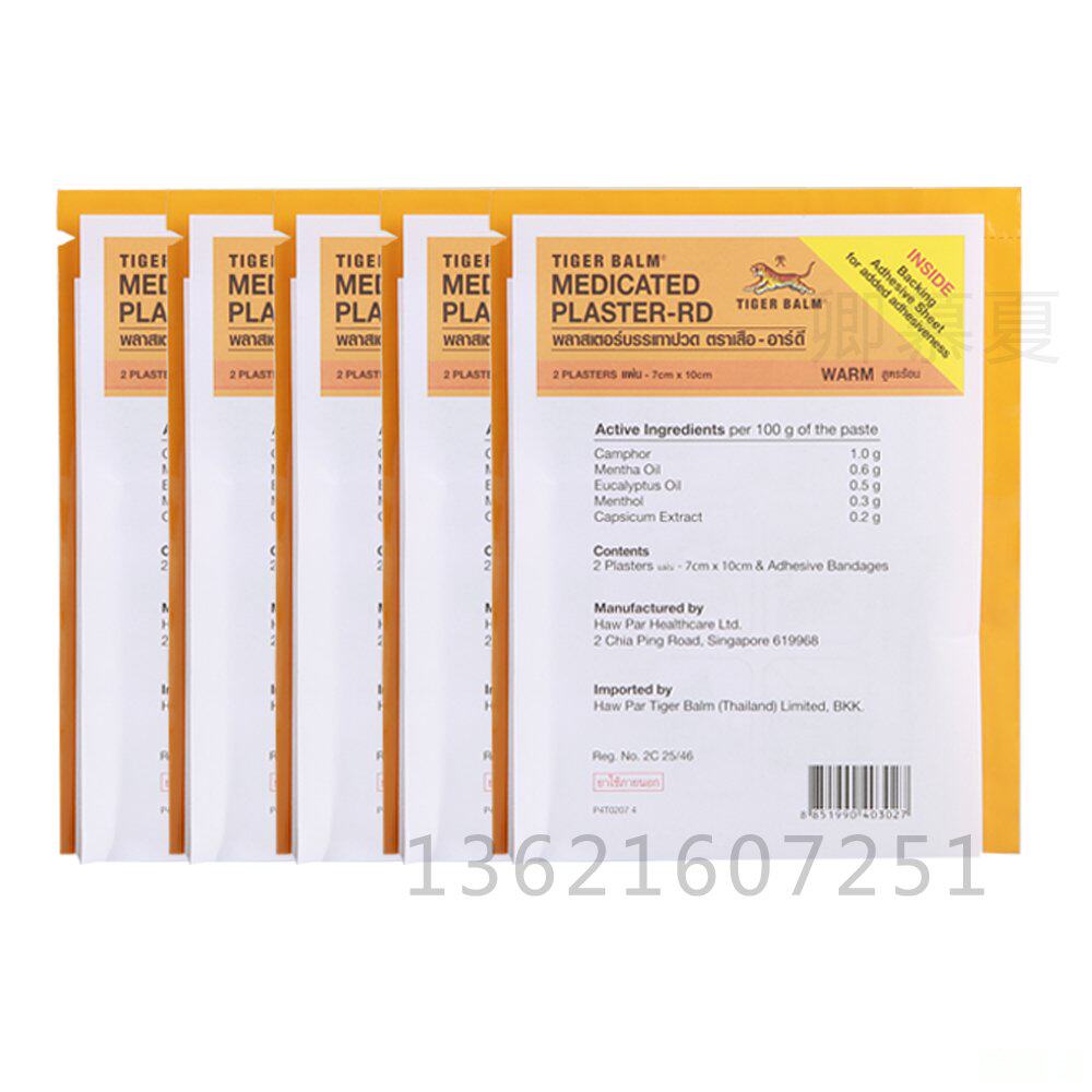 Thai Original Costume Tiger Balm Tiger Mark Tiger Mark Analgesic Plaster Cloth Patch 5 Packs 10 Pieces 7 * 10cm Warm Type