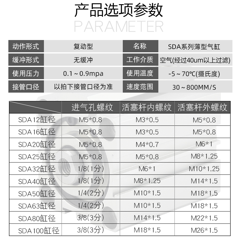 Small pneumatic thin cylinder SDA32*5X10-15-20-25-30-40-50-60-70-75-80-90S