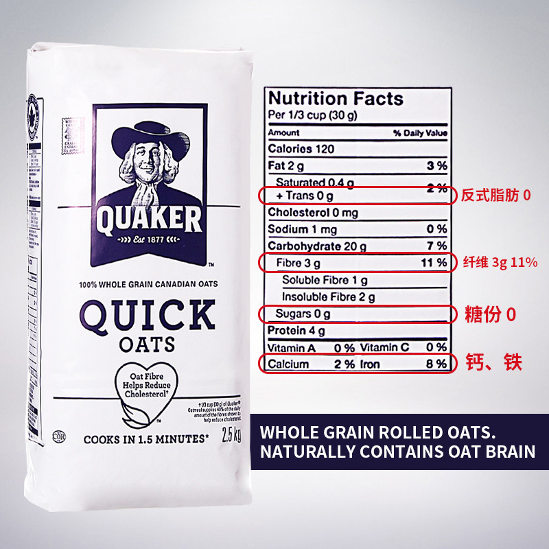 Canada imports Quaker sugar-free refined pure oatmeal substitute porridge original grain nutrition breakfast quick boiled beverage