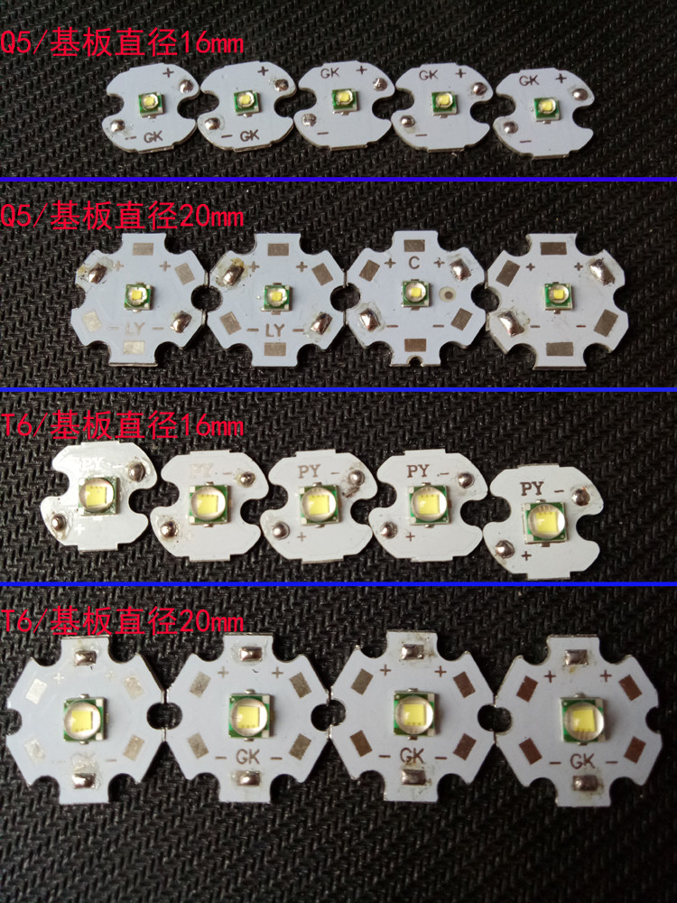 Q5 5W White Light Substrate Diameter 20MMQ5 5W White Light Substrate Diameter 16MMQ5 5W Yellow Light Substrate Diameter 16MMT6 10W White Light Substrate Straight