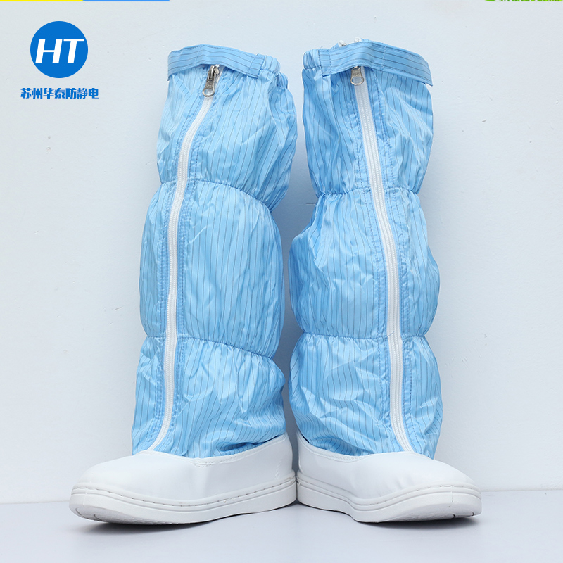 Antistatic shoe boots dust-free workshop Soft bottom long cylinder thickened high cylinder male and female PVC breathable dust-proof shoes Blue and white