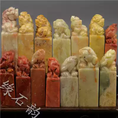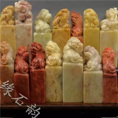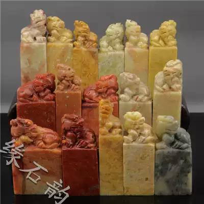 Shoushan Stone Golden Stone seal carving practice chapter Laoling Ancient beast turning head chapter 1 5cm Personal seal head chapter Origin direct sales