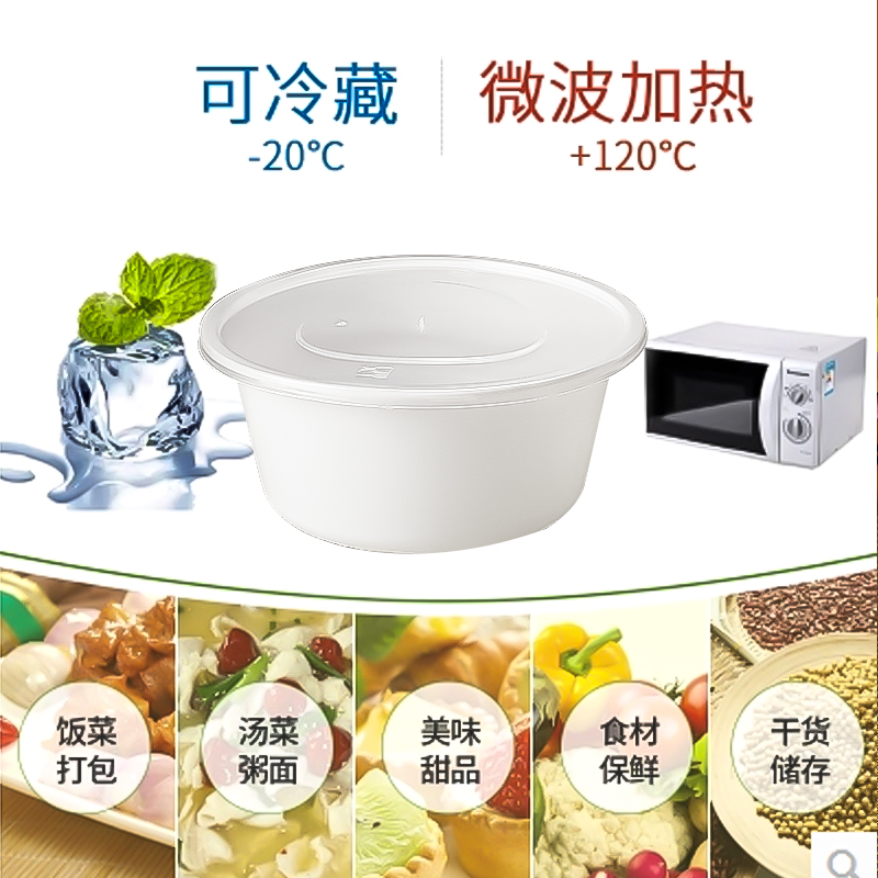 1250ml thickened round plastic bowl Disposable lunch box Packing bowl Noodle bowl 180 sets with lid