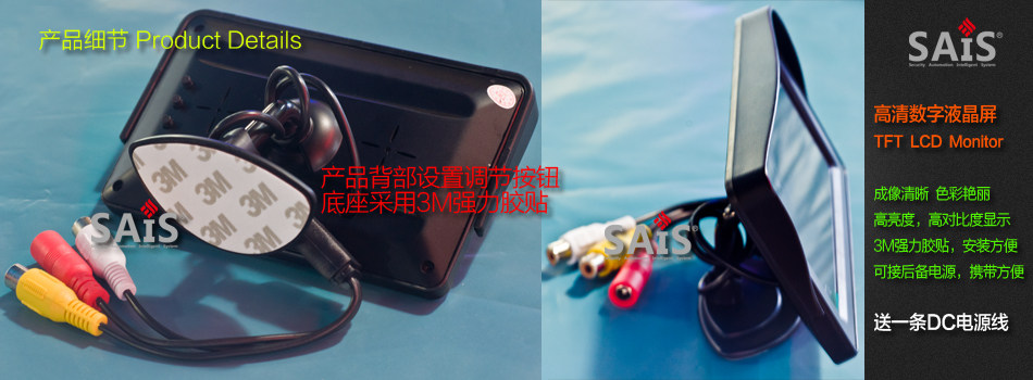 4 3 inch HD digital car LCD display Engineering mini monitor desktop shading LCD screen