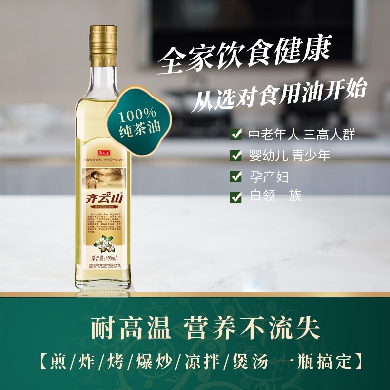 Qiyunshan high-purity camellia oil 500ml pure tea seed oil Cold salad cooking oil Special low-fat oil for pregnant women and children
