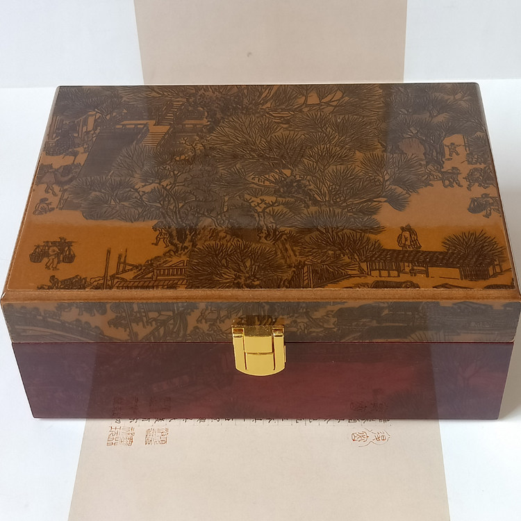 Shoubao Golden Edge Wooden Box Shoubao Refined Wooden Box Shouxing Wooden Box Blank Wooden Box Red Box 6 Qingming Shanghe Tu High-grade wooden box can hold two pairs of ball wooden boxes