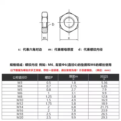 304 stainless steel thin teeth thin hexagon nut Flat thin nut thin screw cap non-standard M8M10M12M14M16M20