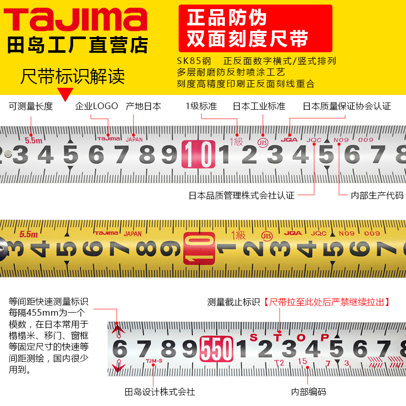 Japan Tajima tape measure 5 meters 3 meters 7.5 meters 10 meters steel tape measure high precision wear-resistant thickening hard household ruler