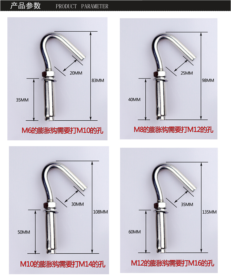 Stainless steel expansion hook 304 expansion screw bolt hook stainless steel extended expansion tube cover screw