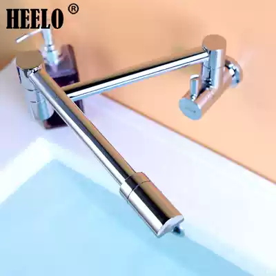 Copper single cold wall out folding black mop pool faucet in-wall telescopic stretch rotatable mop pool splash-proof