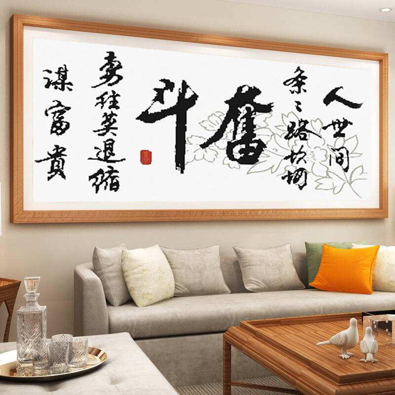 Cross stitch calligraphy and painting simple novice beginner calligraphy 2021 new struggle living room inspirational office full line embroidery