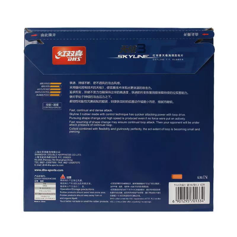 DHS Red Double Happiness Tianji 3 sets of glue table tennis rubber inner energy viscous anti-glue Tianji 3 control speed type