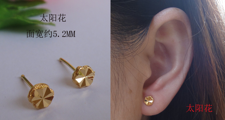 999 foot gold small ear pin 24K pure gold earbum with delicate and beautiful sunflower style earlobes wearing earshot