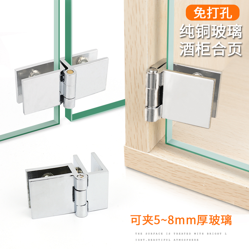 Hole-free glass hinge Copper glass cabinet door hinge Glass hinge Wine cabinet hinge Glass cabinet door hinge