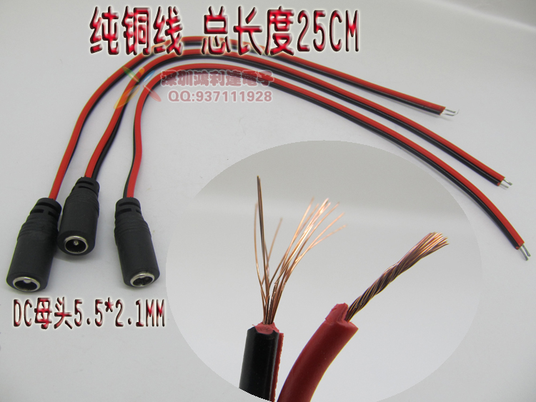 High-quality pure copper core DC power cord 5 5*2 1 plug single female head wire monitoring power female connector