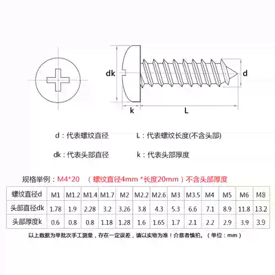 304 stainless steel round head self-tapping screw Cross pan head wood screw M1 2M1 4M1 7M2M2 2M3-M3 5