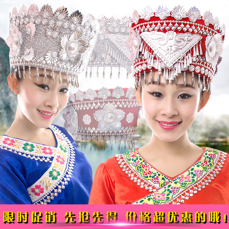 Miao nationality headwear, Dong nationality dance clothing, hats, ethnic dance performance headwear, stage performance accessories, Miao nationality silver jewelry