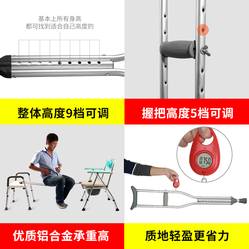 Medical aluminum alloy underarm crutches for adults and children can adjust the elderly fracture thickened double crutches walker