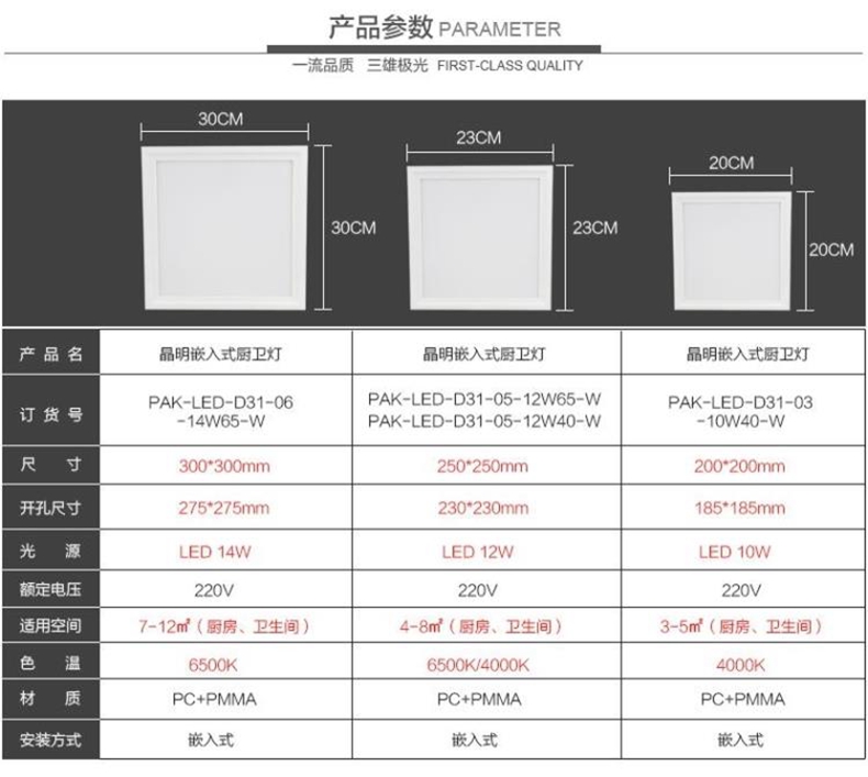 10W Drilling 18*18(warm white 4000K)10w Drilling 18*18(white light 6500K)12W Drilling 23*23 (white light 6500K)12W Drilling 18 * 18 (warm white 4000K) 10W Drilling 18 * 18 (white light 6500K) 12W Drilling 23 * 23 (white light 6500K)