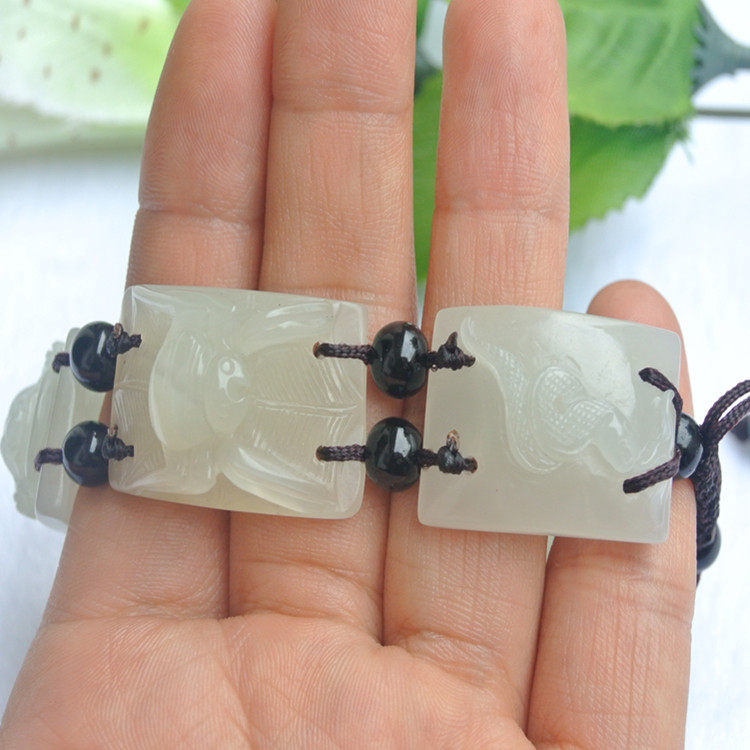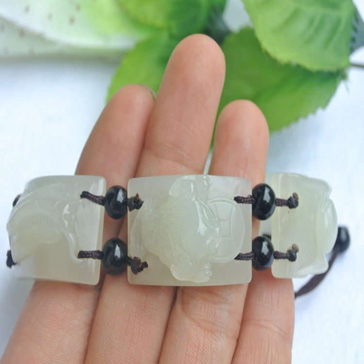 Xinjiang Hetian Jade green and white jade five poison bracelet men's bracelet hand string jade bracelet men's genuine guarantee