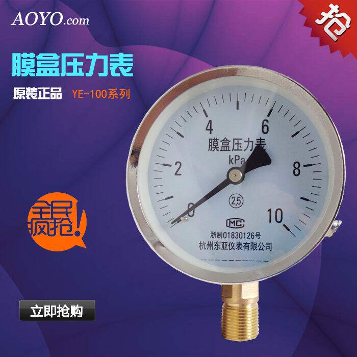 YE-100 -25-0KPA film box pressure gauge Micropressure gauge Gas pressure gauge negative pressure gauge kpa gauge