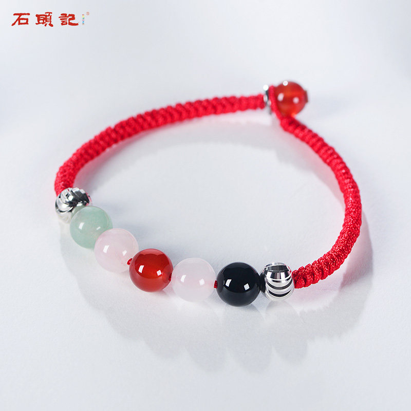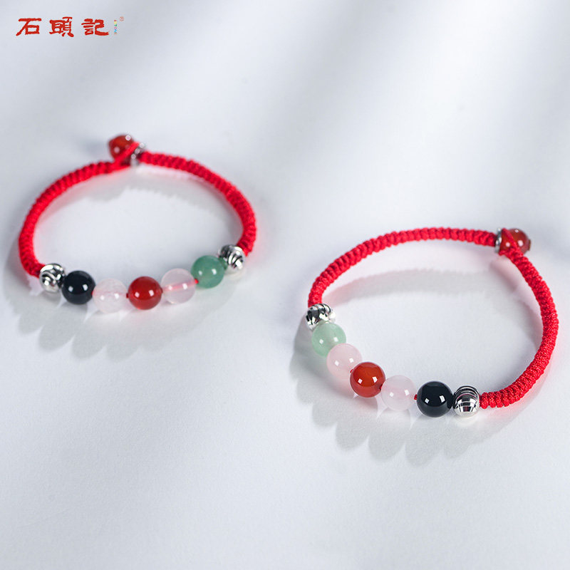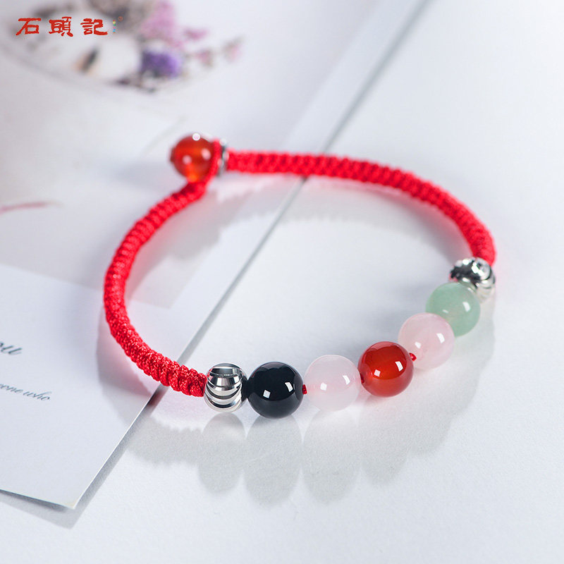 Shi Tou Ji Wufu Zhaimen powder crystal hand string Tangling jade handmade red rope woven hand chain female good luck Buddha beads
