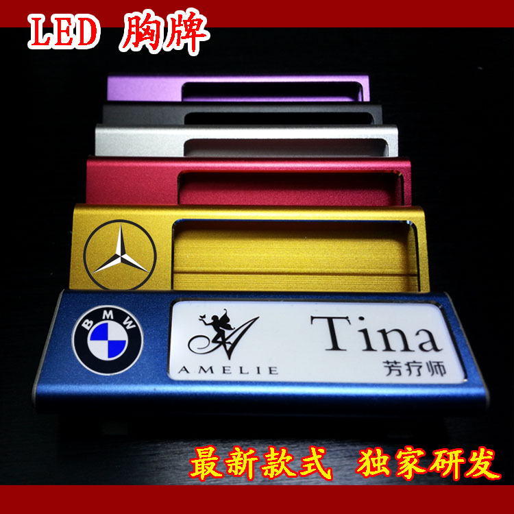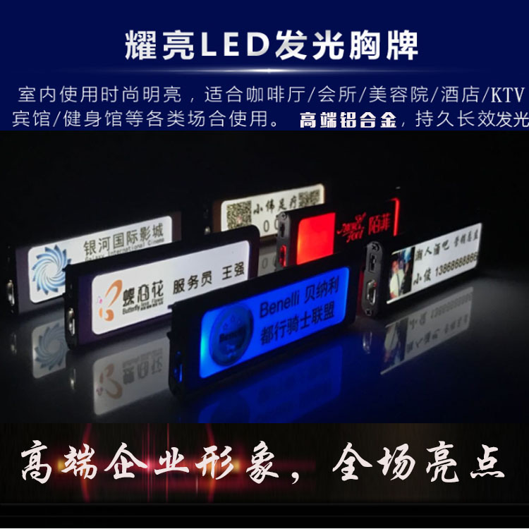 High-end Aluminum Alloy Electronic Luminous Breast Board Hotel KTV Bar Employee Chest Card LED Work Sign Set To Be Rechargeable