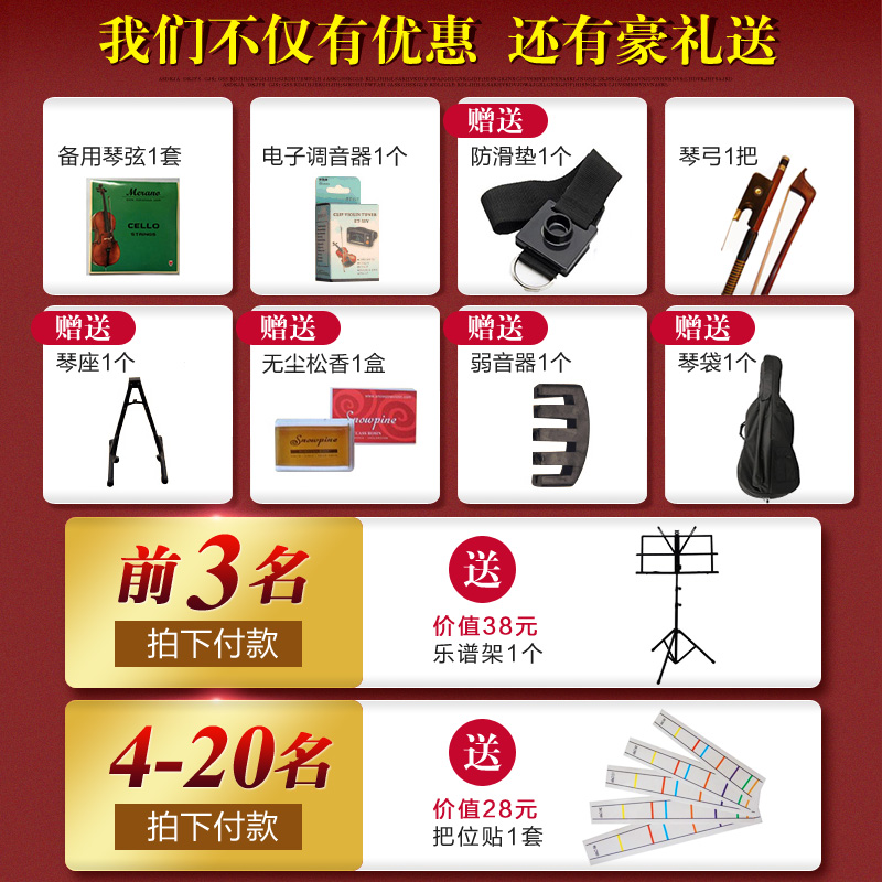 Family cello Beginner Professional playing grade natural tiger pattern handmade solid wood Adult children's musical instrument