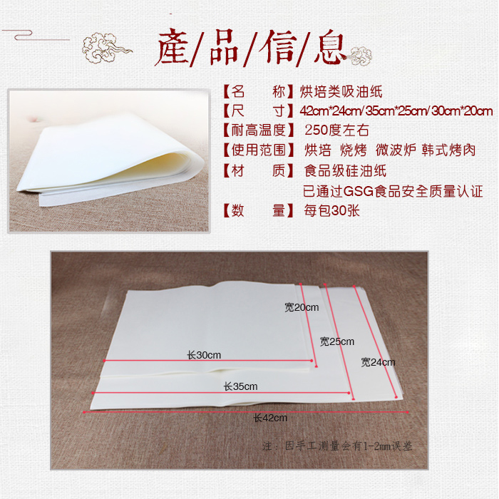 Barbecue Paper Suction Oil Paper Oil Light Paper Kitchen Baking Paper Grilled Pan Paper Silicone Oil Paper Grilled Meat Paper (30 sheets) -Taobao