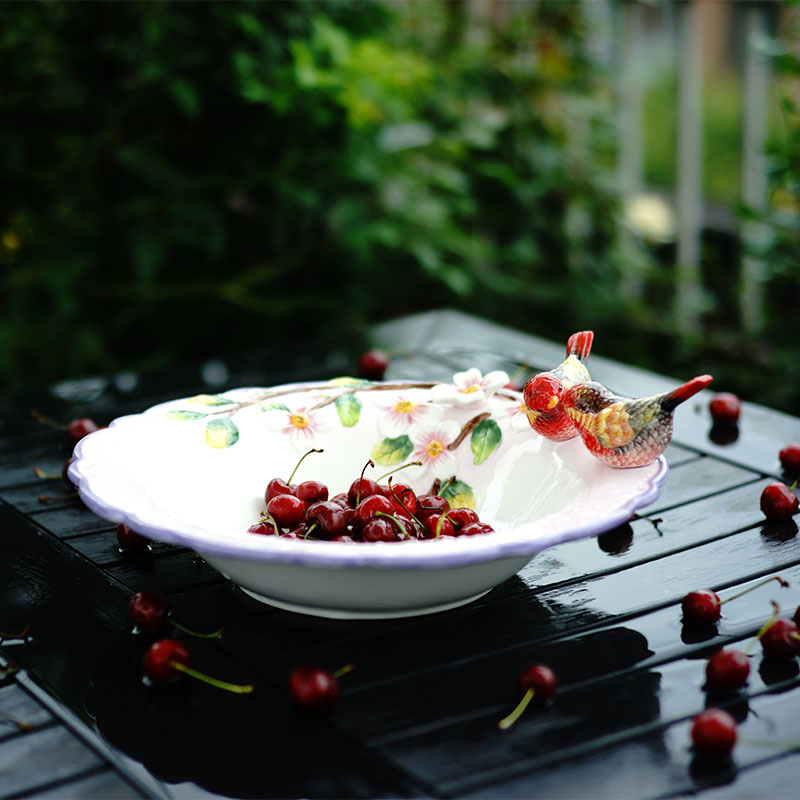 Red Nestle Ceramic Fruit Pantry American Fruit Pan-Style Big Fruit Pan Tea Dot Home Plate Decorated Cutlery Dinner Plate