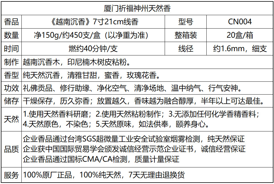Original factory praying for Fugod State < Vietnam Sunken Incense > 21cm Line fragrant natural incense room for incense and calming CN004