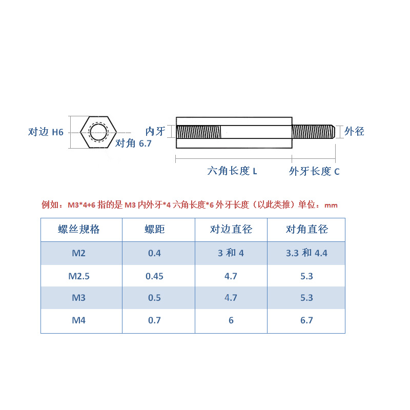 Hexagonal copper column computer case single head hexagonal stud isolation column circuit board motherboard copper column m3m4 nut column